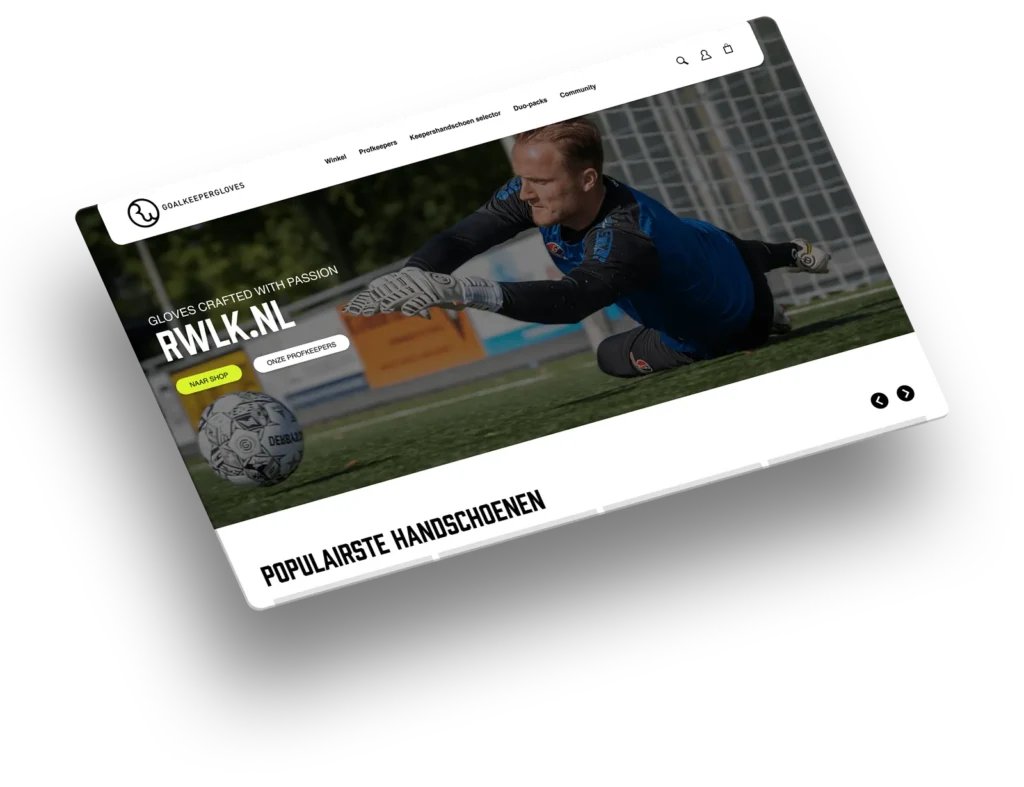 Voor keeperhandschoenenmerk RWLK ontwierp en bouwde ik een nieuwe website. De oude site was verouderd en niet responsive. De nieuwe versie moest fris, gebruiksvriendelijk en toekomstbestendig zijn, met een webshop die het merk beter ondersteunt.